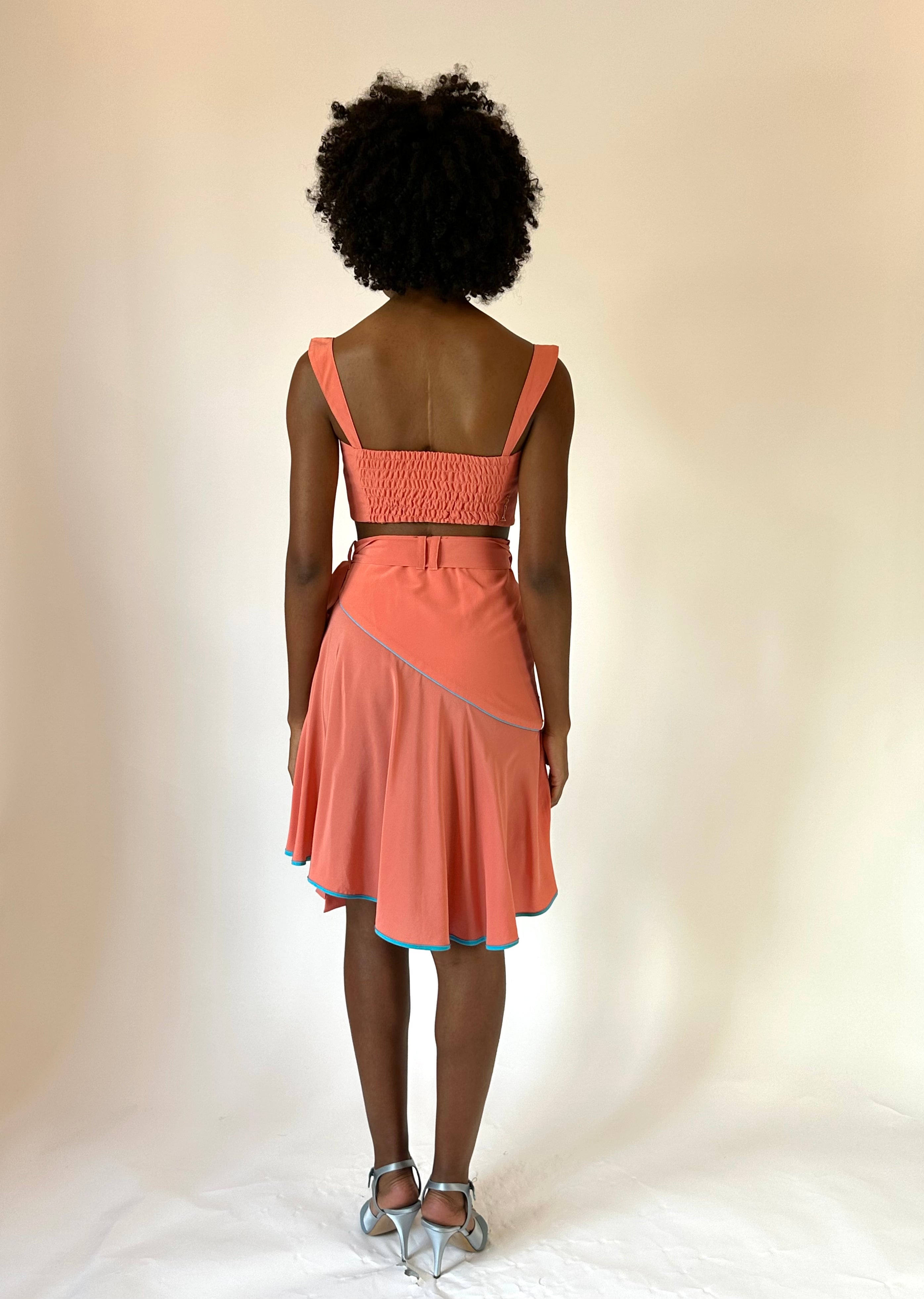 Be your most playful and confident self with the 'Ana' skirt made of quality natural materials that drape elegantly to accentuate your perfect curves. The mid-thigh length skirt features belt loops, a long tie closure, and a unique Fibonacci-cut ruffle with a contrasting pop of color. Let your flirtatious side shine in the 'Ana' skirt.