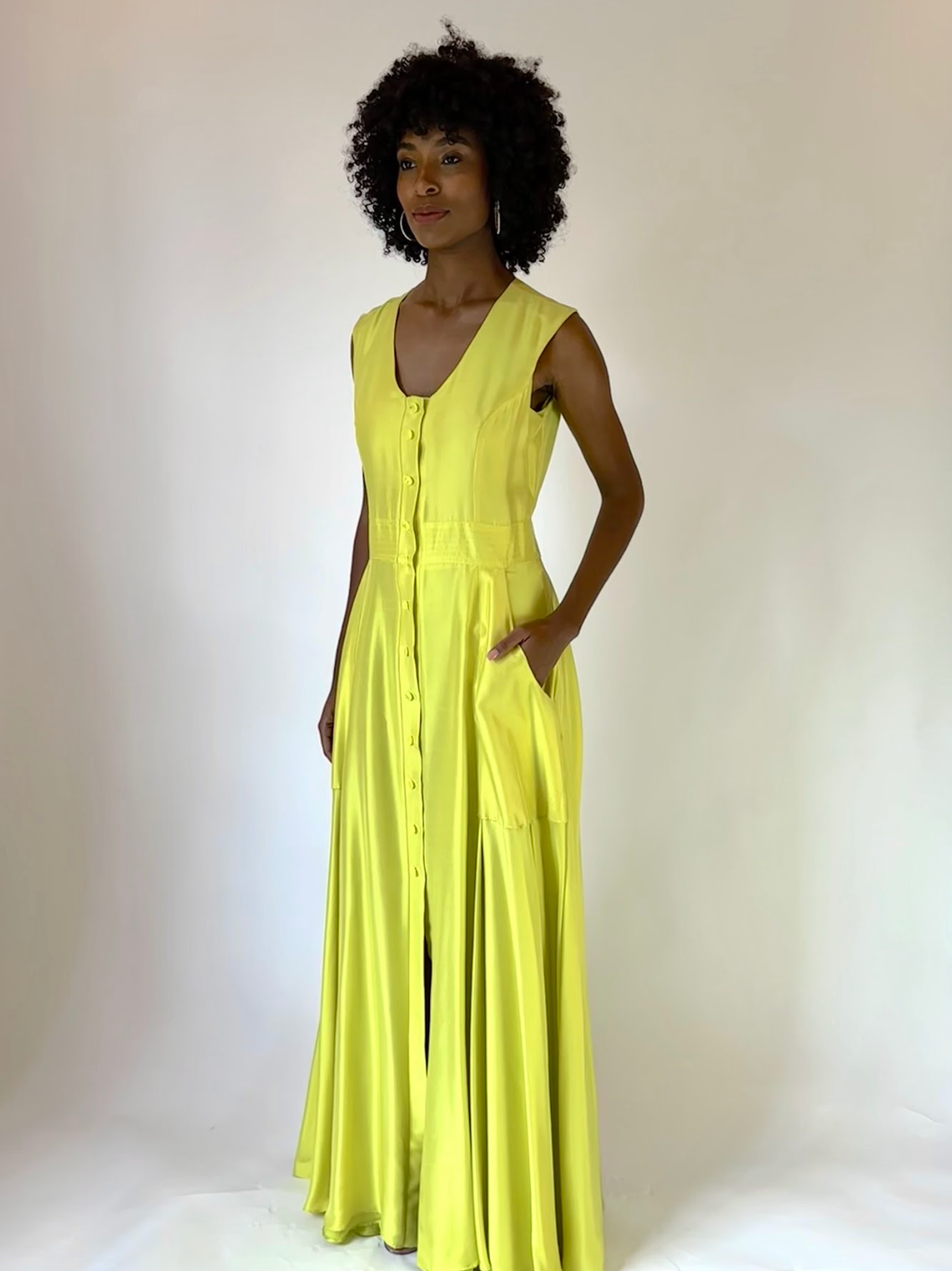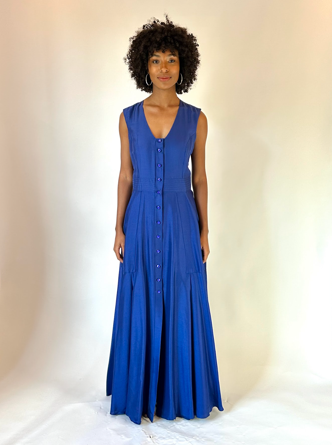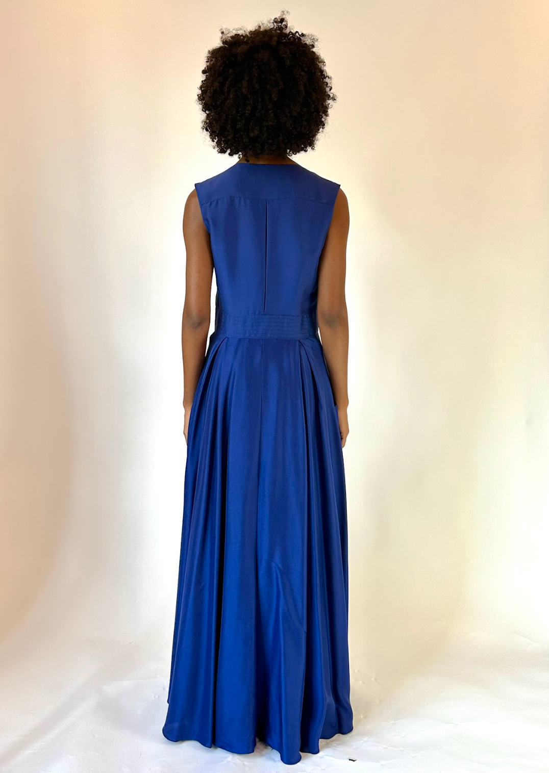 The 'Berta' gown is the gown to make a statement. The 100% silk Shantung looks luxurious while still having a crisp, lightweight feel, while the wide waistband and sleeveless are perfect design details to flatter the figure.