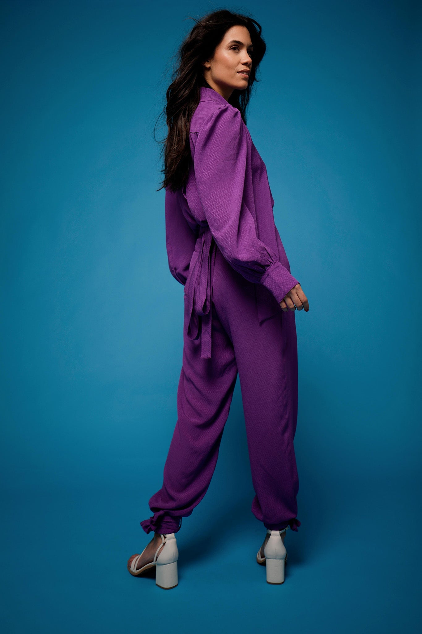 The 'Claudia' tie blouse gets playful by combining the classic structure of a silk button up with the feminine addition of the bow tie neckline, and a fun surprise vent in the back to leave them wanting more as you walk away. Perfect piece to have fun with styling, tuck it in for a subtle key hole back accent, half tucked for a relaxed casual look, or free and flowing with leggings. Picture here with the 'Alejandra' jogger pants.