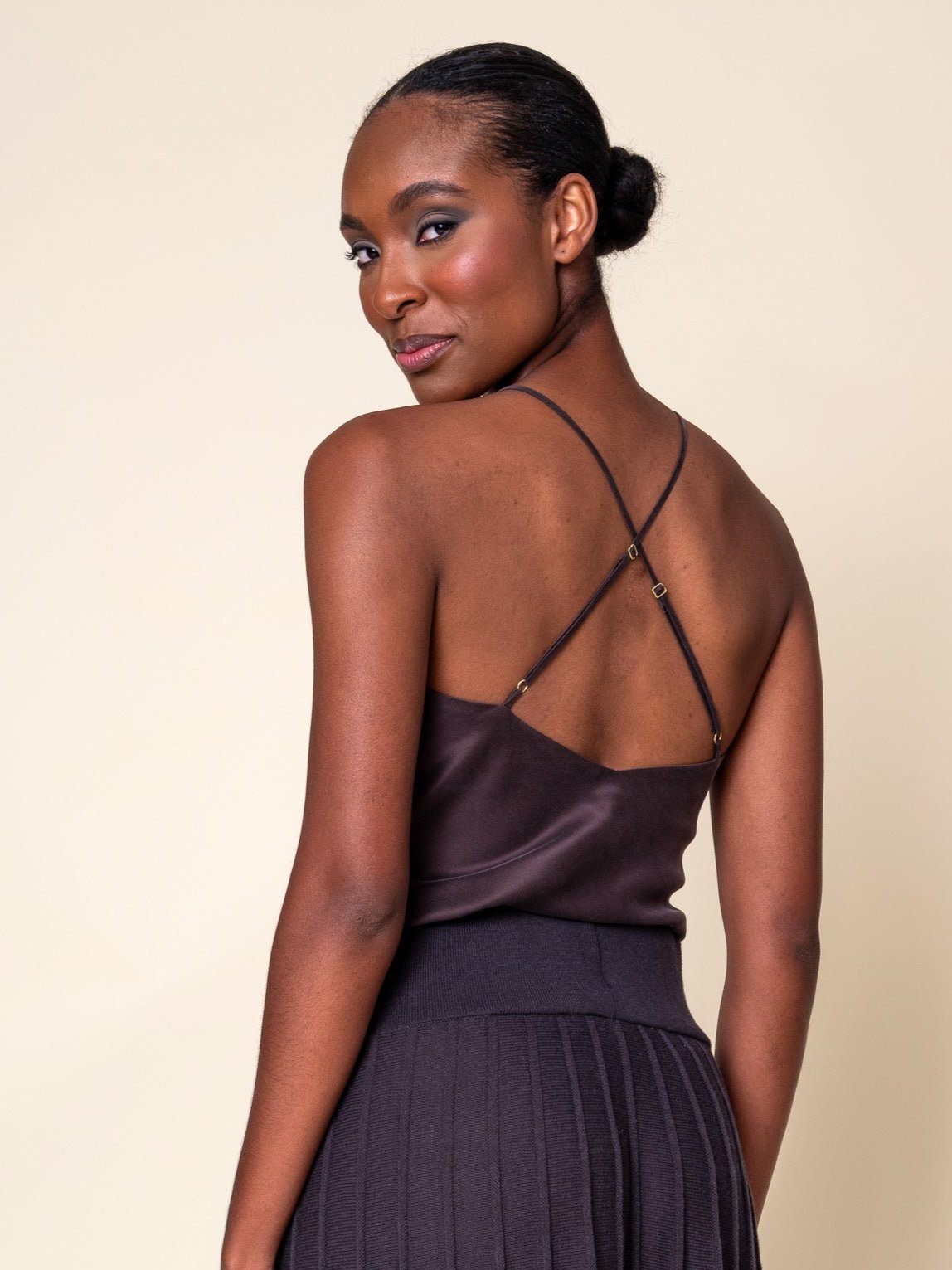 The classic V-neck camisole is an essential addition to any woman's closet. Crafted from a high quality sueded charmeuse fabric, featuring adjustable spaghetti straps and side split openings, it displays a polished look. Dress it up with heels for a sophisticated look or down with sneakers for a more casual feel, making it a multi-use and flattering staple for any occasion.