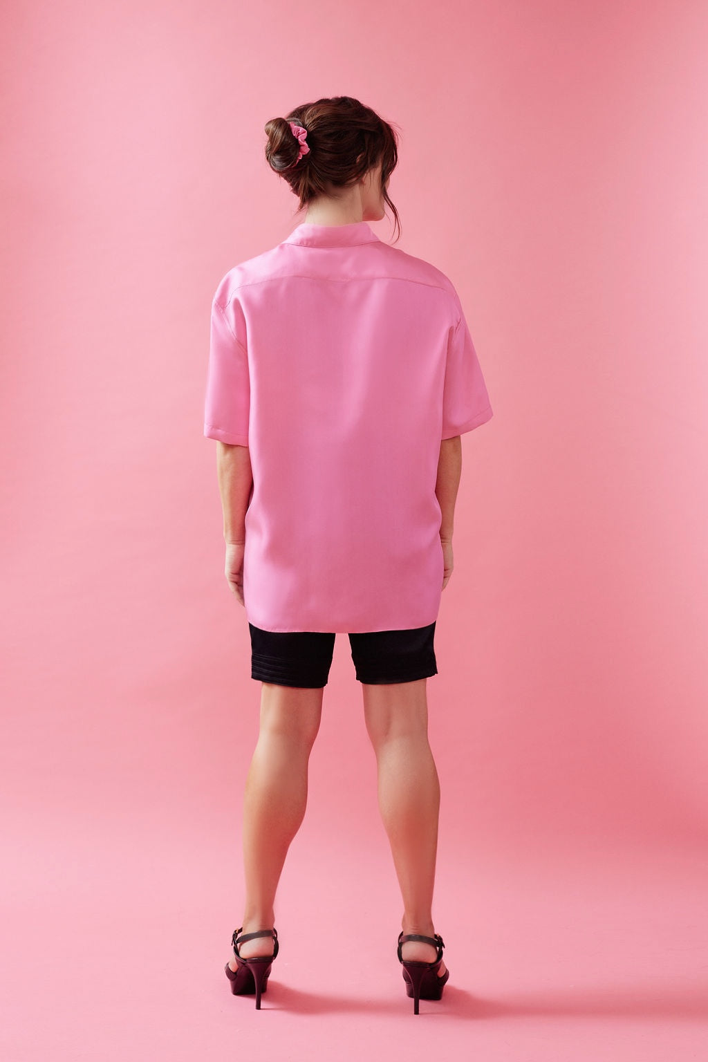 The perfect out of office boyfriend shirt you can have just as much fun with. Layer it up over your favorite tank and jeans, wear open as a cover up a la plage, or tie it at the waist over any outfit for an extra silk layer. Fit is oversized for boyfriend look. Spread collar half sleeve shirt in silk twill, with a front button closure and back yoke.